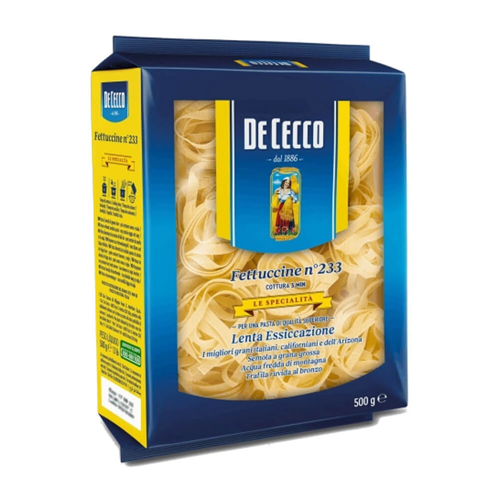 Experience authentic Italian flavor with De Cecco Fettuccine Nidi Semola! Made from high-quality semolina flour, these 500g nests of fettuccine create the perfect sauce-to-pasta ratio for a burst of flavor in every bite. Add a touch of Italy to your dishes with De Cecco Fettuccine Nidi Semola.